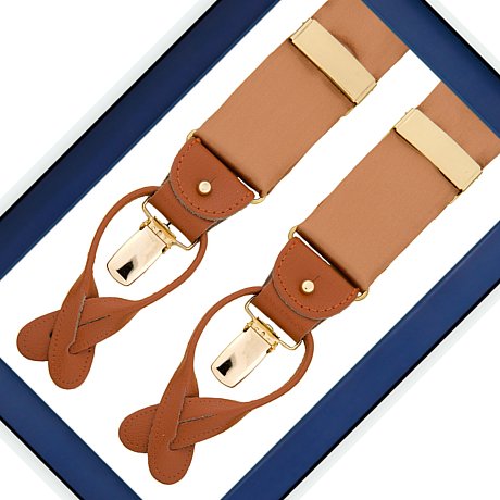 Albert Thurston Gold Brown Satin - bretelles - bretelles en satin marron - cuir marron - modèle Y - clips et passants