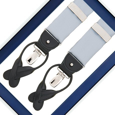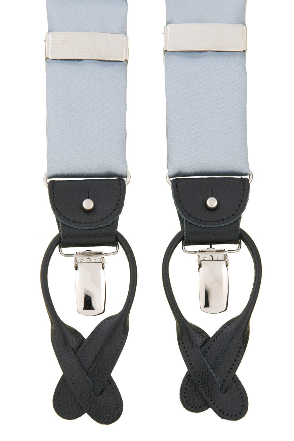 Albert Thurston Grey Satin - bretelles - bretelles en satin gris - cuir noir - modèle Y - clips et passants