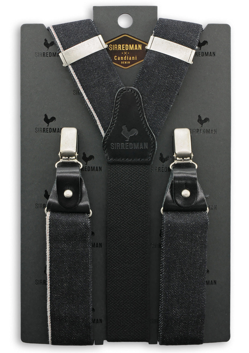 Bretelles en denim noir, fabriquées à la main par la marque néerlandaise SirRedman. Conception néerlandaise et produite aux Pays-Bas.