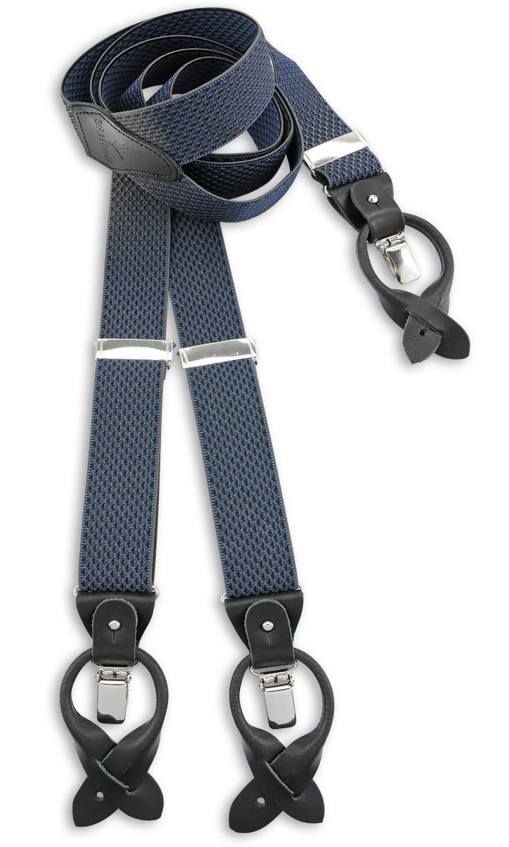 Vous pouvez porter les bretelles avec des passants OU avec des clips, c'est à vous de décider. Vous pouvez retirer les boucles et les clips des bretelles. Avec les 6 boutons, l'aiguille et le fil spécialement fournis (y compris un tableau des tailles pour la distance), vous pouvez également fixer les boutons à l'intérieur de votre pantalon. Vous pouvez donc porter les bretelles avec passants.