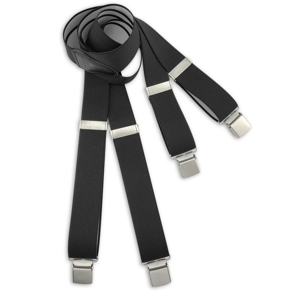 De elastische banden zijn voorzien van stevige metalen clips die moeiteloos aan de broekband klemmen zonder te verschuiven. Dankzij het Y-model met lederen rugstuk blijven de banden netjes op hun plek en zorgen ze voor een elegante, slanke lijn op de rug.