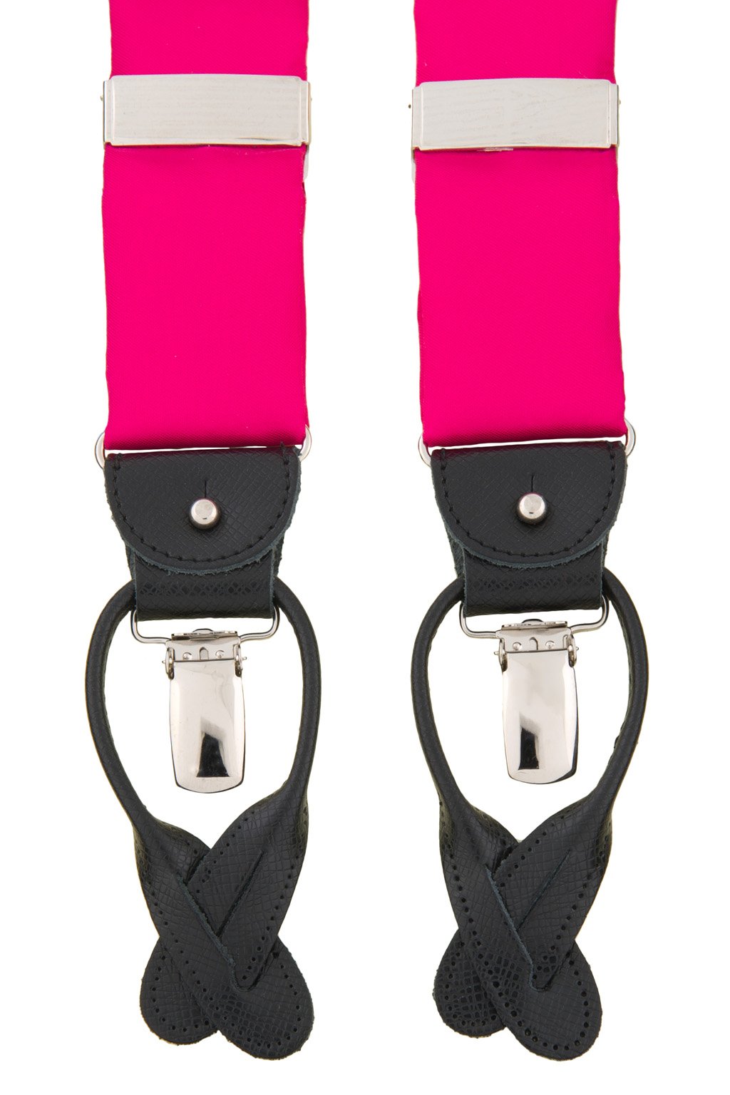 Albert Thurston Roze - bretels - roze banden van satijn - zwart leer - Y model - clips en lussen