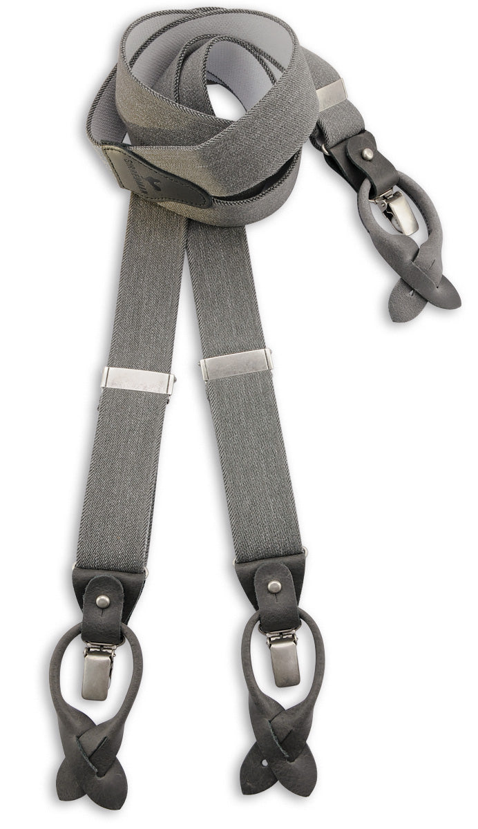Grijze denim bretels, handgemaakt door het Nederlandse merk SirRedman. Dutch design en geproduceerd in Nederland.